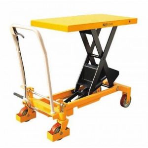 This table truck lifts a 500kg load from 285mm to 880mm. Table top area of 815mm x 500mm.