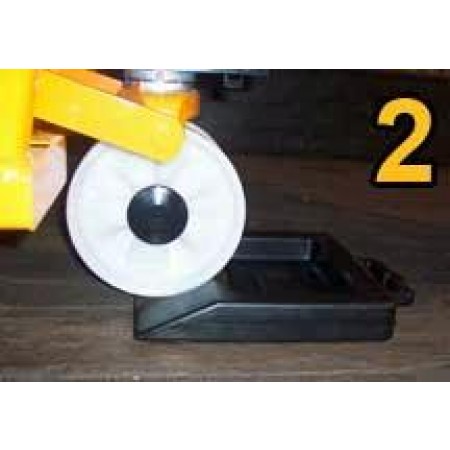 The Pallet Truck Stop is lightweight (weighing about 3 lbs.) and easy to use allowing any user to easily secure their pallet truck during transit. This unique and inexpensive product is an ideal solution for the transport industry.